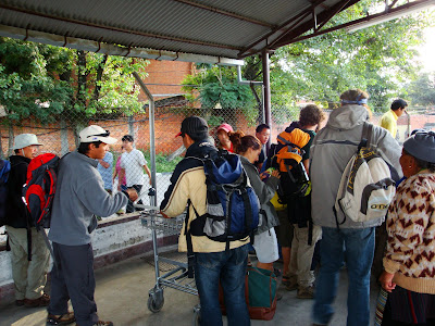 Retrieving our luggage at Kathmandu domestic airport