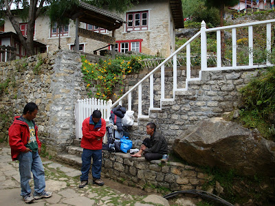 Porters resting on the way to Monjo